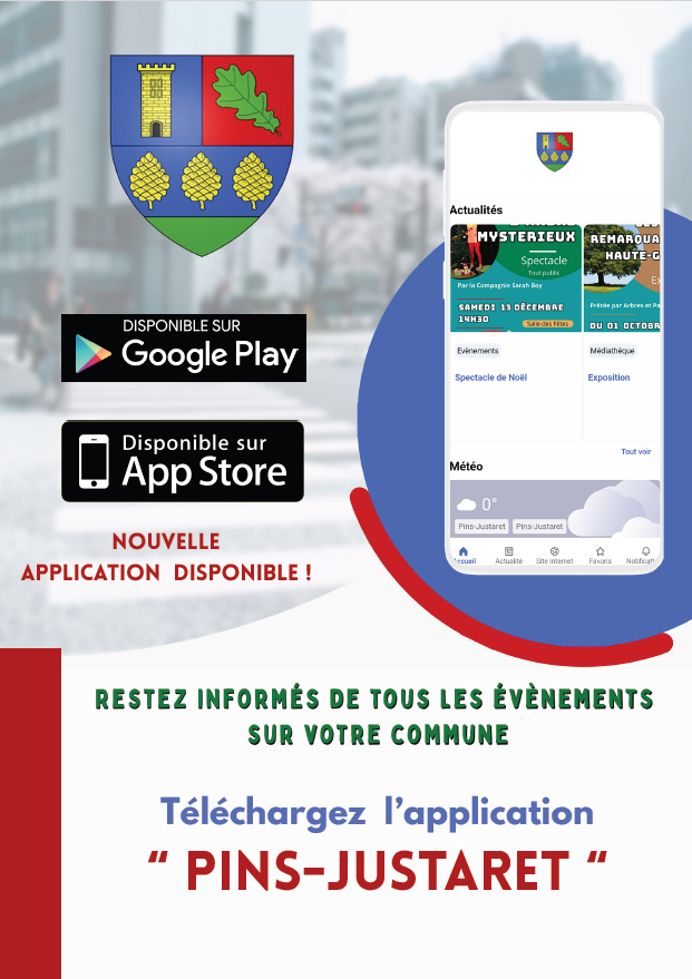 L'appli - Pins-Justaret - est disponible sur Google Play et sur l'App Store d'Apple
