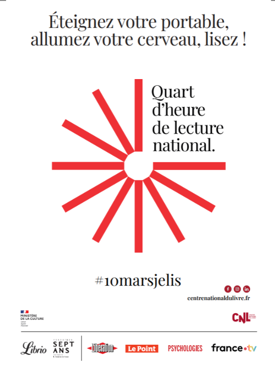 Mardi 10 mars, lisez et participez, vous aussi, au Quart d’heure de lecture national !