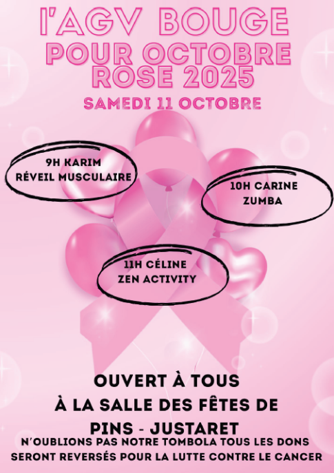 À l'occasion d'Octobre Rose, vos associations de Pins-Justaret Villate se mobilisent sur les deux communes pour la lutte contre le cancer du sein - maladie qui touche 1 femme sur 8.